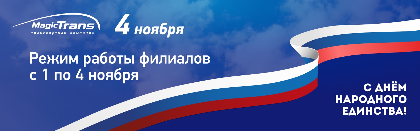 В связи с празднованием Дня народного единства, обращаем ваше внимание на изменения графика работы терминалов «Мейджик Транс».
