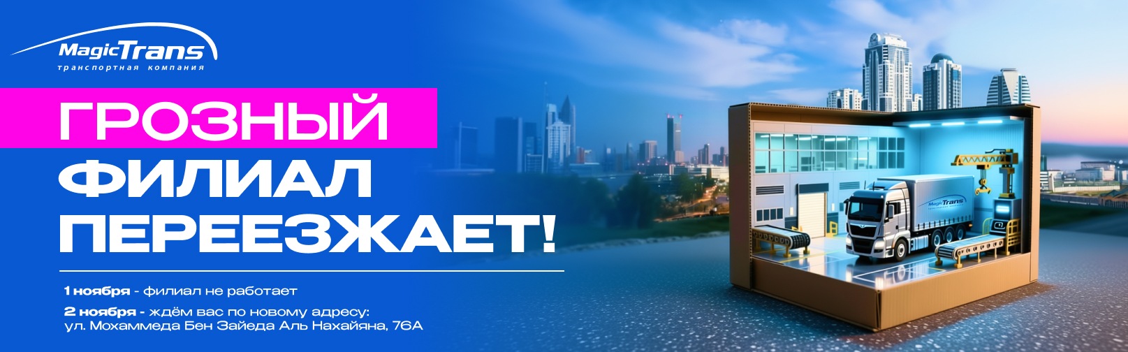 1 ноября филиал «Мейджик Транс» в Грозном переезжает.
