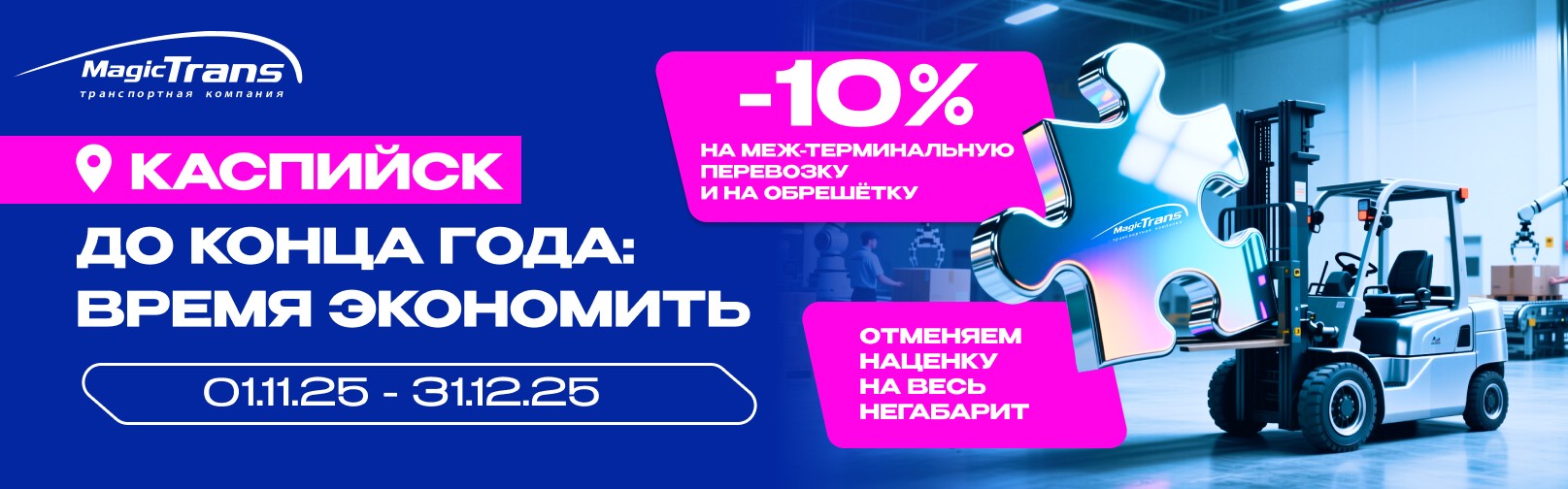 С 01.11.25 по 31.12.25 выгодные условия по акции для отправки груза из Каспийска.
