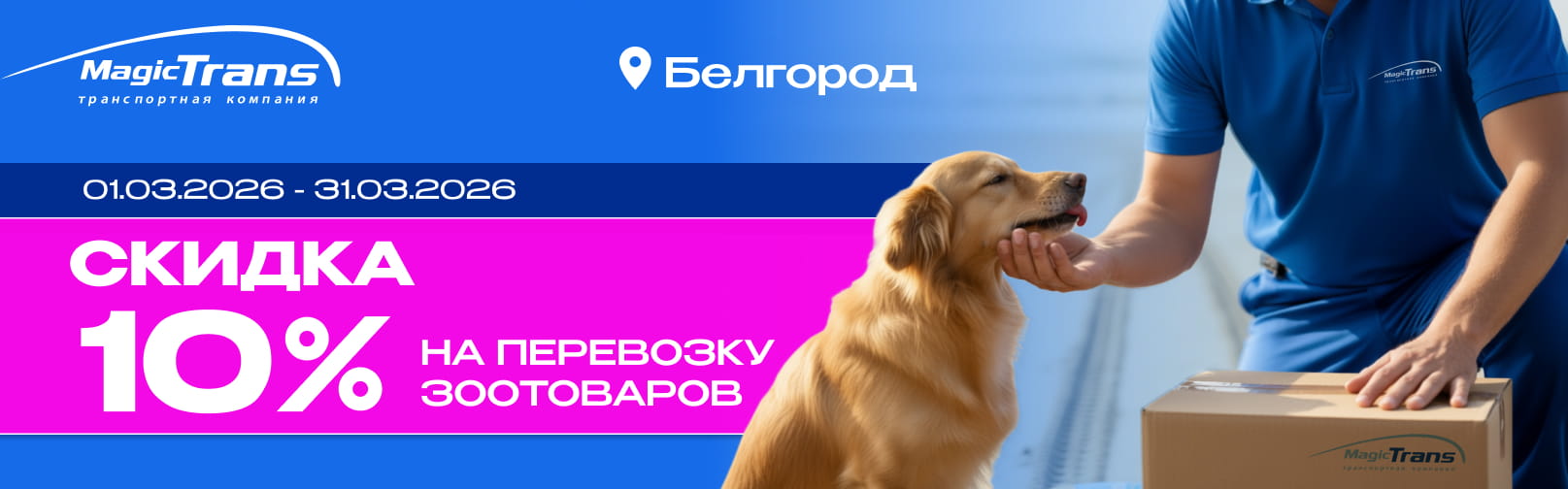 • Скидка 10% на перевозку зоотоваров из/в Белгород.