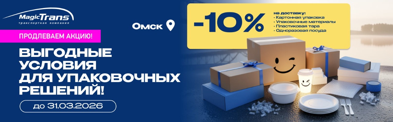 10% скидка на межтерминальную перевозку упаковочных материалов из Омска.