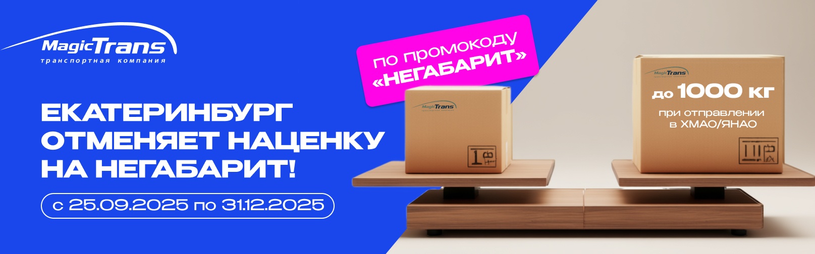 С 25.09. по 31.12.2025г. отменяется наценка за транспортировку негабаритных грузов весом до 1000 кг при отправлении из Екатеринбурга в ХМАО/ЯНАО.