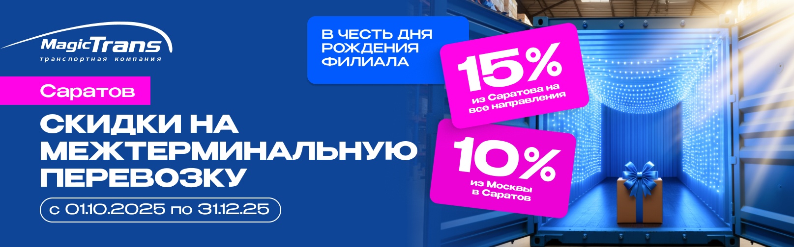 • Скидка 10% на межтерминальную перевозку из Москвы → в Саратов.