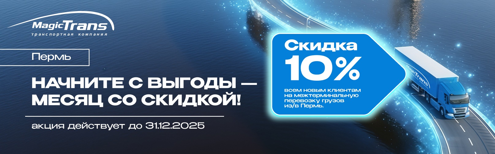 Скидка 10% всем новым клиентам на межтерминальную перевозку грузов из/в Пермь.