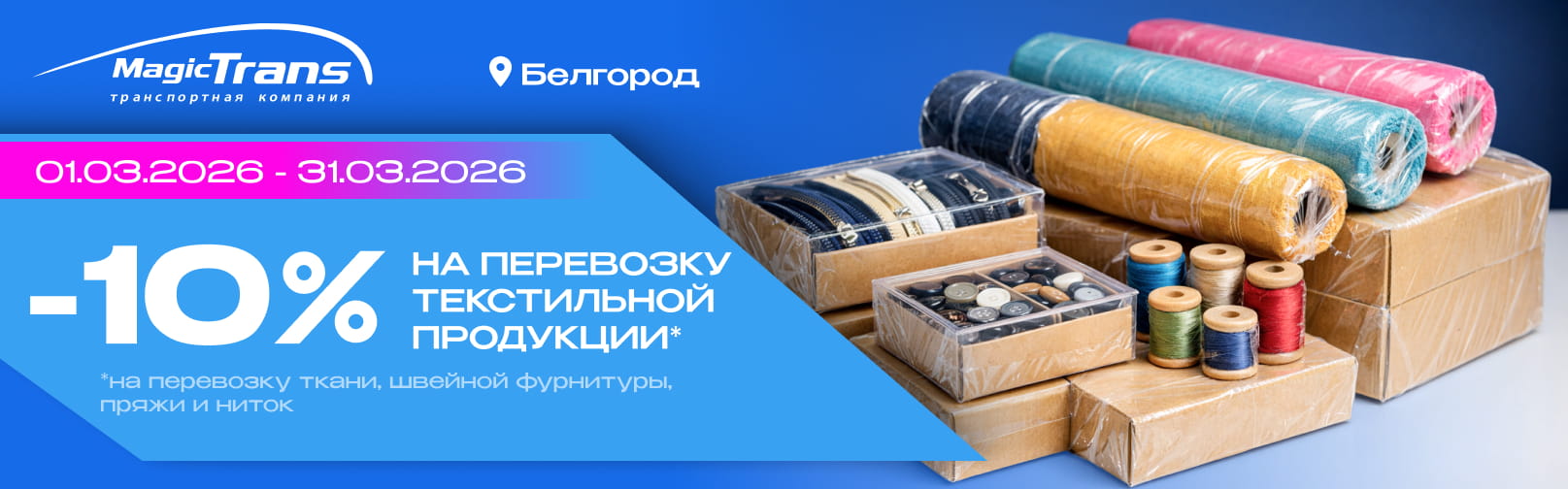 • Скидка 10% на перевозку текстиля из/в Белгород.