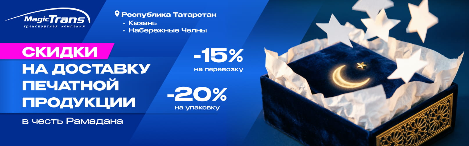 Скидка на доставку печатной продукции в честь священного месяца Рамадана в/из Казани и в/из Набережные Челны.
