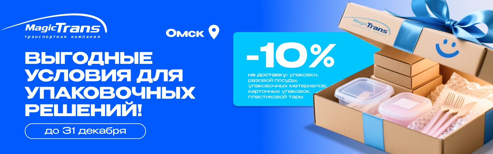 Скидка 10% на межтерминальную перевозку упаковочных материалов из Омска.